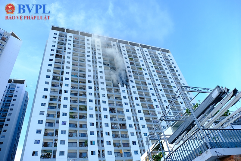 Tuy nhiên, do hiện trường ở độ cao lớn, lực lượng PCCC đã sử dụng vòi chữa cháy vách tường của chung cư để dập lửa.