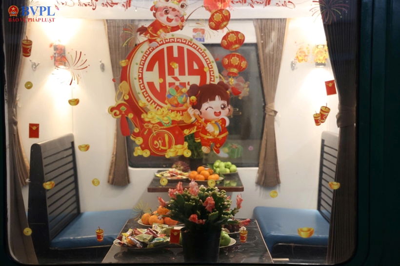 Tàu được trang trí đầy không khí Tết giúp hành khách mang lại cảm giác ấm cúng như ở nhà.