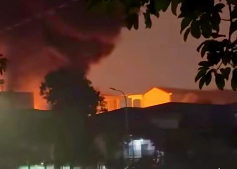 | Đám cháy tại khu vực kho cũ của nhà máy giày Vento được người dân ghi lại. |