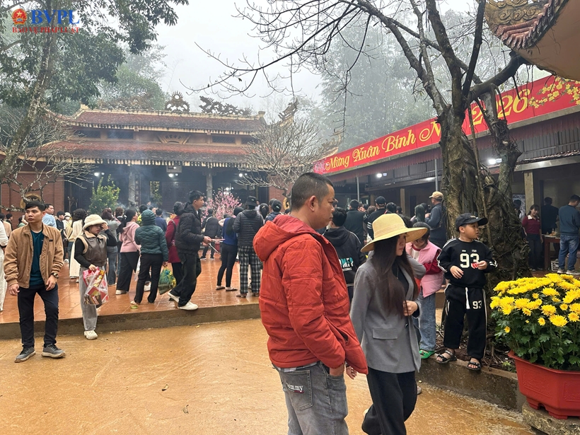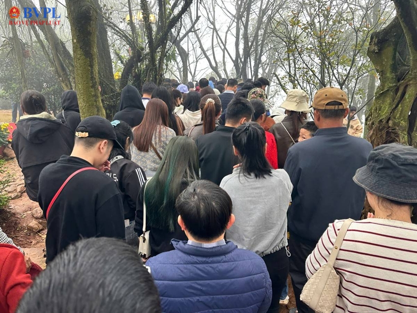| Dòng người đổ về Am Tiên, mặc dù trời mưa gió. |