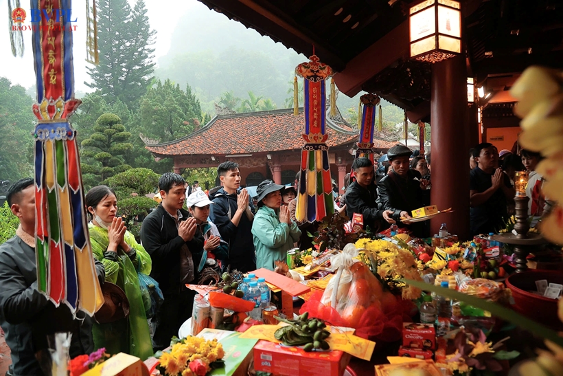 | Người đi lễ được khuyến cáo hạn chế đốt vàng mã, giữ gìn cảnh quan và tuân thủ hướng dẫn của lực lượng chức năng. |