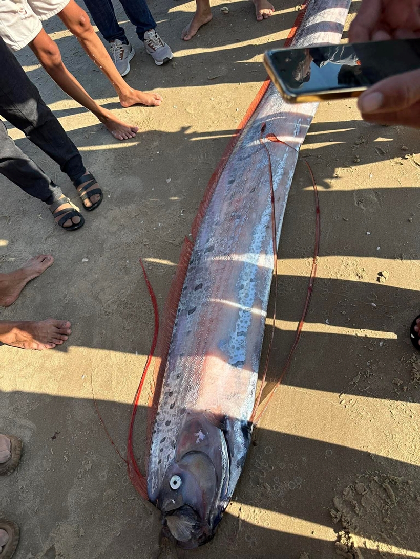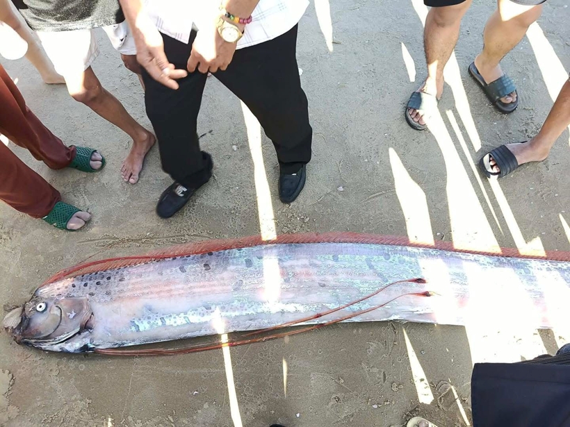 Hình ảnh cá hố rồng hiếm gặp dài gần 4m dạt vào bờ biển Lâm Đồng