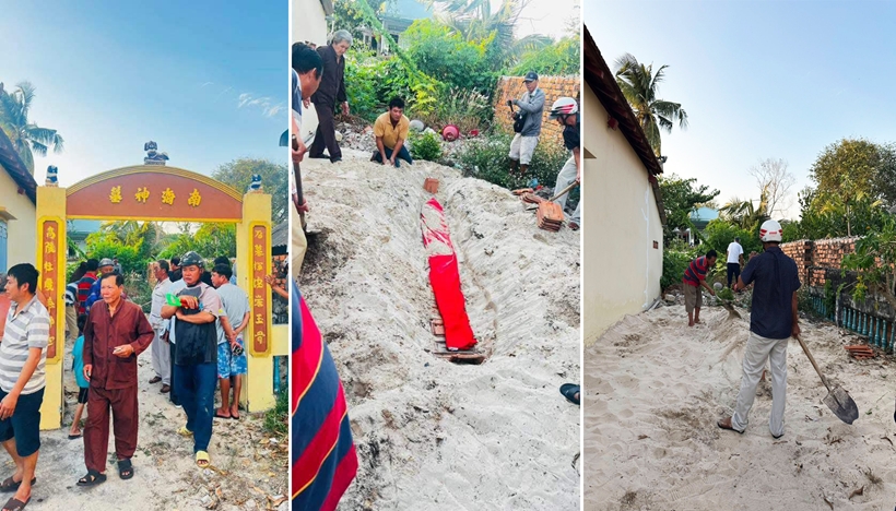 Người dân chôn cất cá mái chèo theo phong tục. Video: THN.