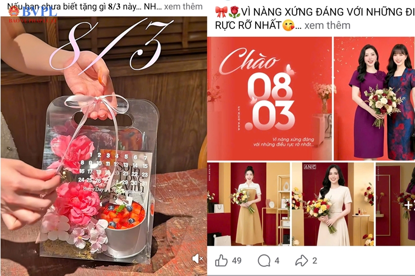 Không chỉ tại các cửa hàng truyền thống, trên mạng xã hội và các sàn thương mại điện tử, hàng loạt sản phẩm dành cho ngày 8/3 cũng được quảng bá rầm rộ.