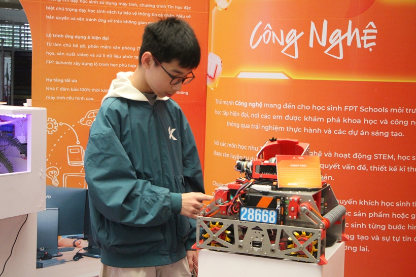 Bên cạnh đó là khu vực trải nghiệm với hàng chục gian hàng đa lĩnh vực mang đến một bức tranh sinh động về xu hướng học tập hiện đại: từ lập trình, điều khiển robot VEX IQ, V5, FIRST với các thử thách mang tính chiến lược, đến workshop sáng tạo, minigame văn hóa – xã hội hay thử thách tiếng Anh.