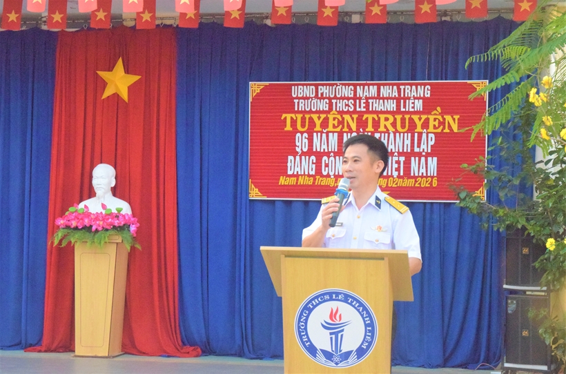Sáng ngày 2/2, Học viện Hải quân (HVHQ- Quân chủng Hải quân – Bộ Quốc phòng) phối hợp với Trường Trung học cơ sở (THCS) Lê Thanh Liêm, phường Nam Nha Trang, tổ chức tuyên truyền, giáo dục truyền thống cách mạng cho  hơn 700 giáo viên và học sinh.