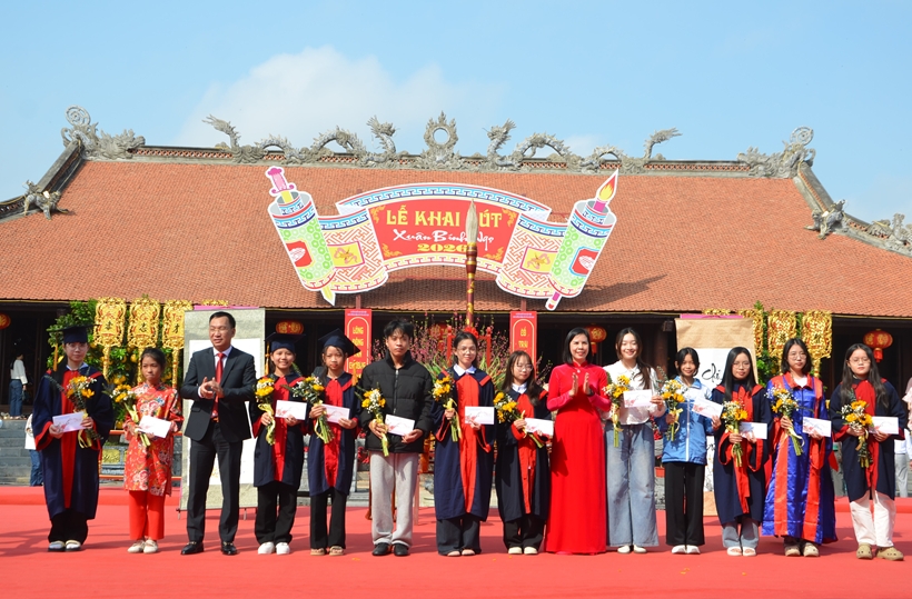 Trong khuôn khổ lễ hội, Ban Tổ chức đã trao thưởng cho các em học sinh có bài viết khai bút xuất sắc năm Ất Tỵ 2025, đồng thời tổ chức nghi thức khai bút cho học sinh các trường THPT, THCS, tiểu học trên địa bàn thành phố và xã Kiến Hưng với chủ đề “Ước nguyện về thành phố Hải Phòng trong tương lai”. Những nét chữ đầu xuân của các em không chỉ là ước mơ cá nhân, mà còn là niềm tin về một Hải Phòng năng động, sáng tạo và phát triển bền vững.
