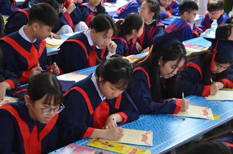 | Ban Tổ chức đã trao thưởng cho các em học sinh có bài viết khai bút xuất sắc năm Ất Tỵ 2025. |