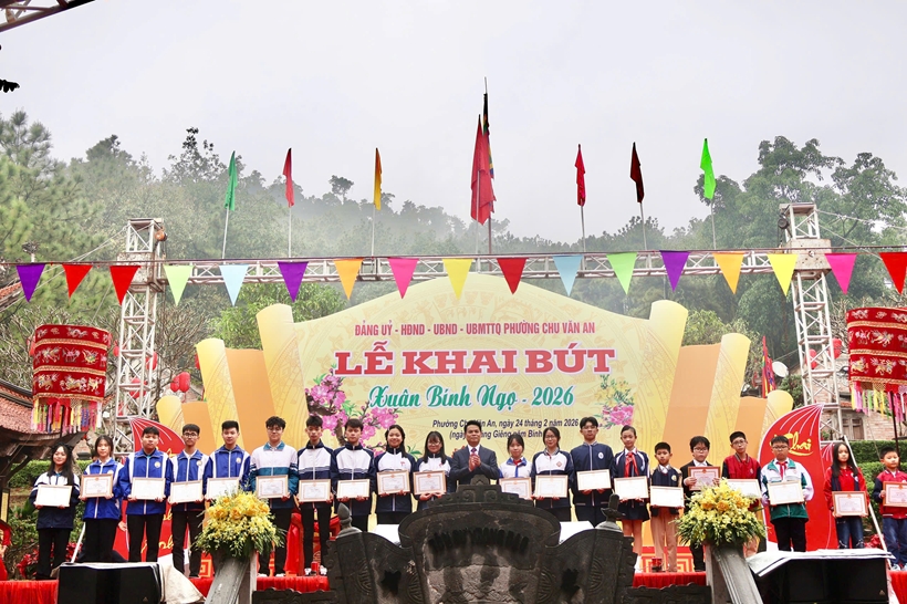 Dịp này, UBND phường Chu Văn An trao thưởng cho 20 học sinh xuất sắc năm 2025, lan tỏa mạnh mẽ phong trào khuyến học, khuyến tài trong cộng đồng. Lễ Khai bút Xuân Bính Ngọ 2026 không chỉ là hoạt động văn hóa đầu năm mà còn góp phần bồi đắp nền tảng đạo đức, tri thức cho thế hệ trẻ, hướng tới xây dựng TP Hải Phòng phát triển bền vững trong giai đoạn mới.