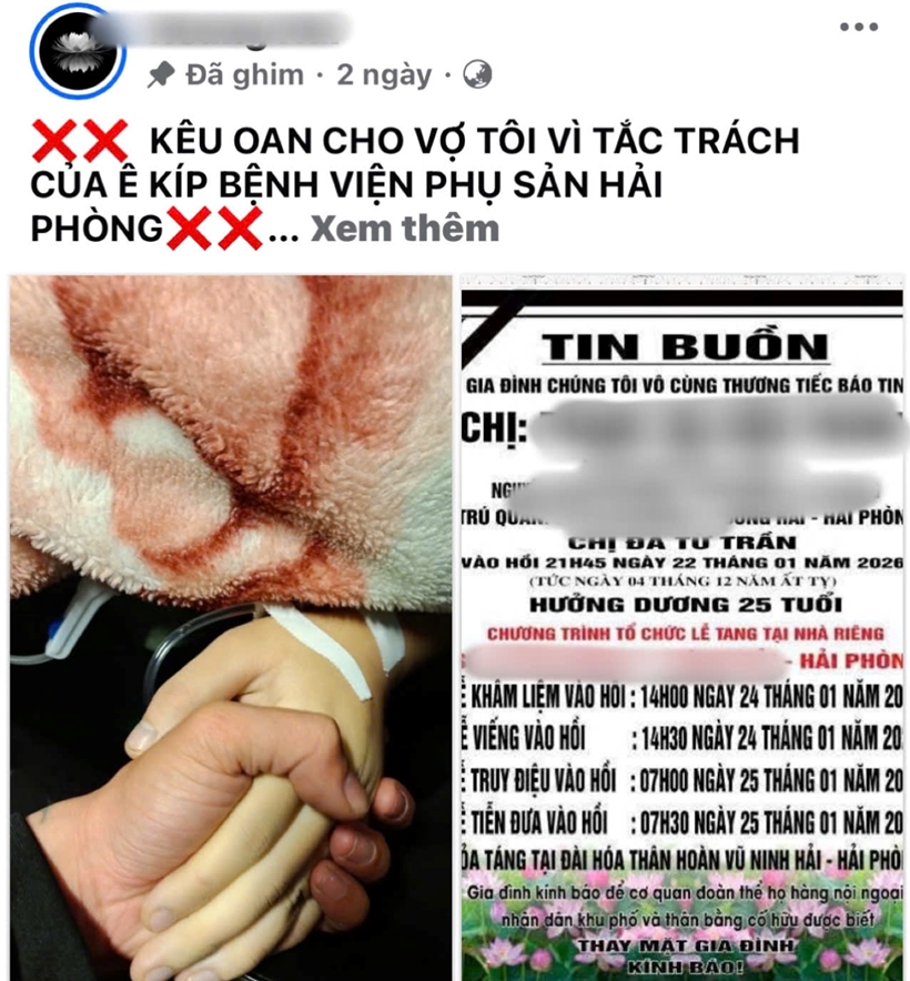 Theo thông tin ban đầu, ngày 21/1/2026, sản phụ P.T.V.T. (SN 2001, trú tại phường Đông Hải, TP Hải Phòng). có dấu hiệu chuyển dạ và được gia đình đưa vào Bệnh viện Phụ sản Hải Phòng để thực hiện ca mổ lấy thai lần thứ ba.