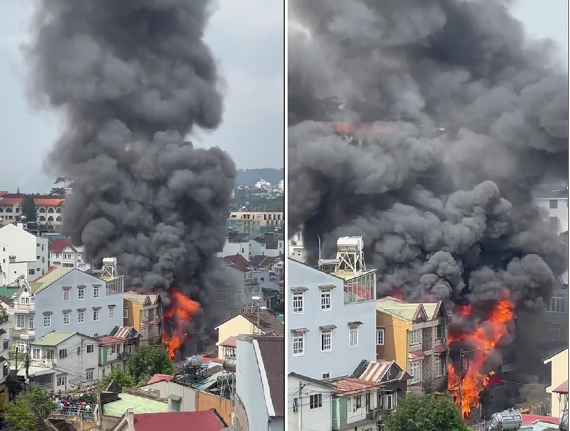 Hoản hoạn phát tán cột khói đen bốc cao trên bầu trời Đà Lạt.