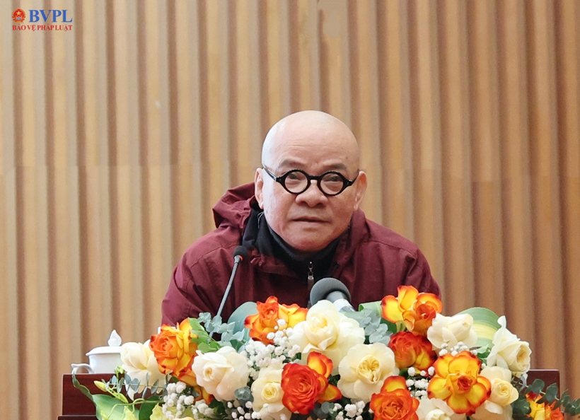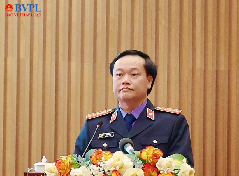 | Đồng chí Nguyễn Văn Thắng, Tổng Biên tập Báo Bảo vệ pháp luật, Ủy viên Thường trực Ban Chỉ đạo phối hợp xây dựng bộ phim, phát biểu tiếp thu ý kiến chỉ đạo của Viện trưởng VKSND tối cao. |