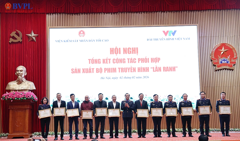 Sáng 2/2/2026, tại trụ sở cơ quan, VKSND tối cao tổ chức Hội nghị tổng kết công tác phối hợp sản xuất bộ phim truyền hình “Lằn ranh”. Đồng chí Nguyễn Huy Tiến, Ủy viên Trung ương Đảng, Bí thư Đảng uỷ, Viện trưởng VKSND tối cao, Trưởng Ban chỉ đạo phối hợp xây dựng bộ phim truyền hình về ngành Kiểm sát nhân dân và đồng chí Nguyễn Thanh Lâm, Ủy viên Trung ương Đảng, Tổng Giám đốc Đài Truyền hình Việt Nam dự, chỉ đạo Hội nghị.