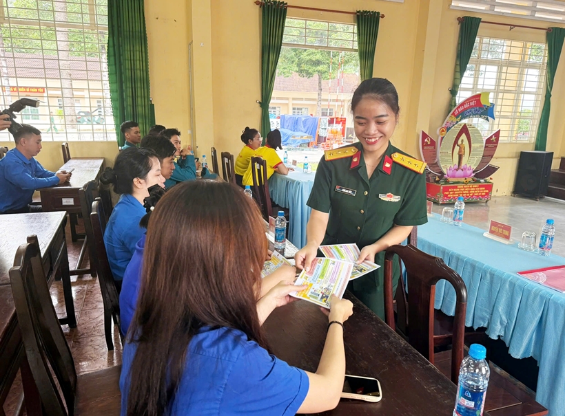 VKS Quân sự Khu vực 73 phát tờ rơi cho các Đoàn viên thanh niên.