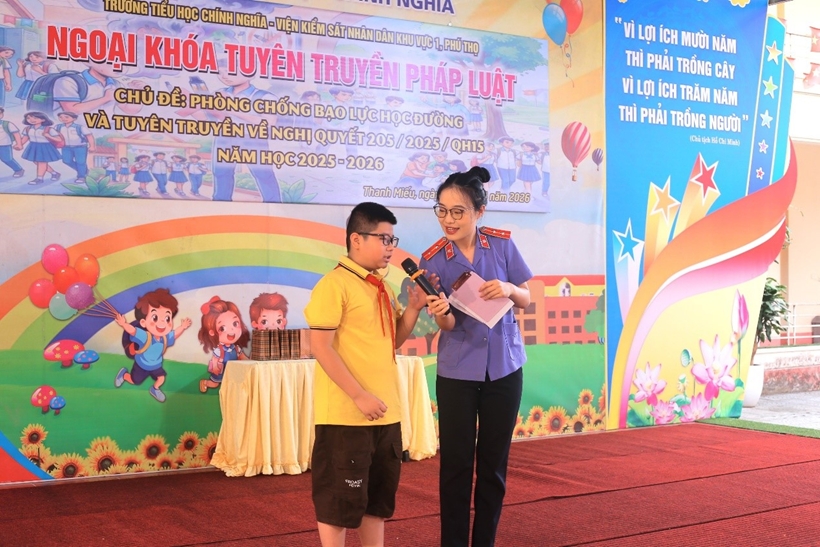 VKSND khu vực 1, tỉnh Phú Thọ vừa phối hợp cùng Trường Tiểu học Chính Nghĩa tổ chức tuyên truyền phòng, chống bạo lực học đường và phổ biến Nghị quyết số 205/2025/QH15 của Quốc hội.