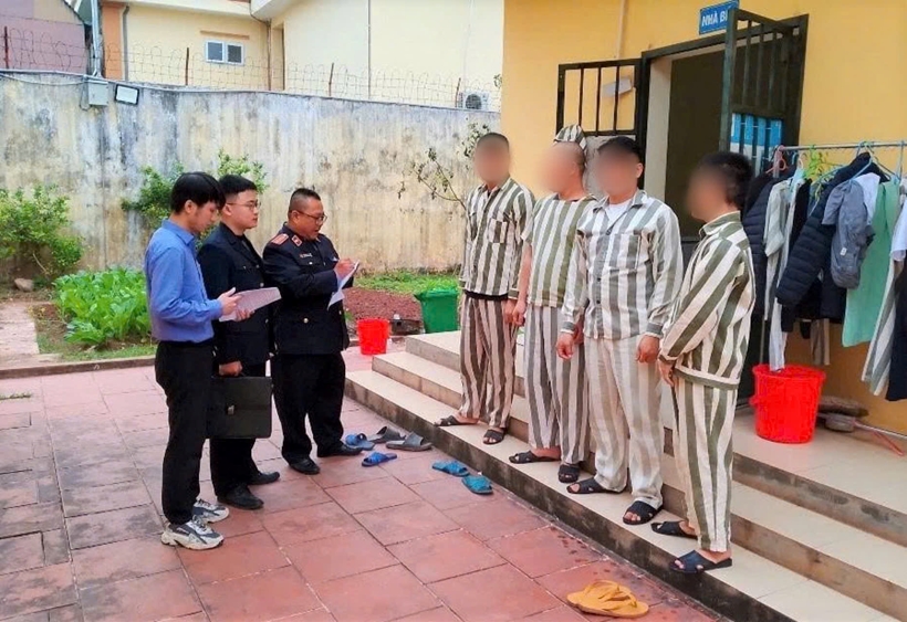 Kiểm sát viên hướng dẫn sinh viên thực tập trong hoạt động kiểm sát tại Phân trại tạm giam Đầm Hà.