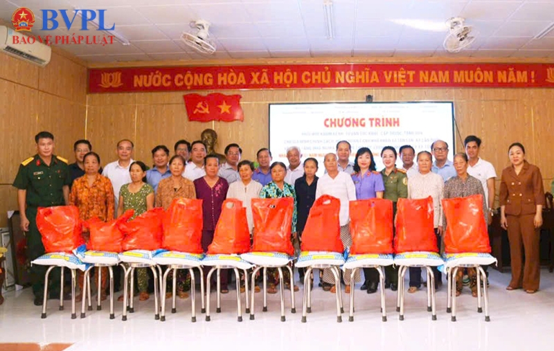 Lãnh đạo VKSND tỉnh Tây Ninh cùng Ban tổ chức, Lãnh đạo địa phương tại buổi khám bệnh, trao tặng quà.