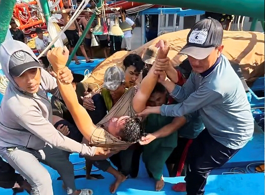 Phản ứng với sự cố, những người tại cảng cá và trên tàu nhanh chóng tiếp cận hầm tàu, hỗ trợ đưa các nạn nhân ra ngoài, lên sàn tàu.